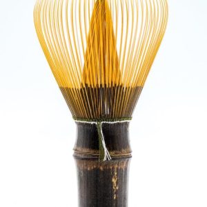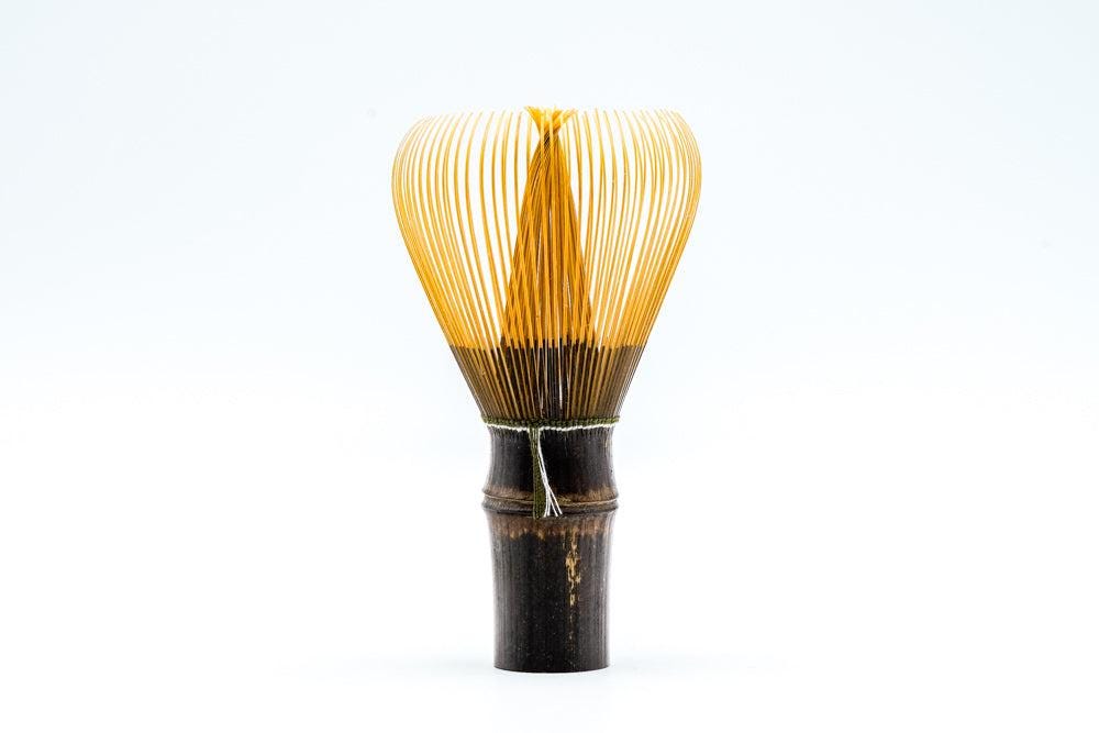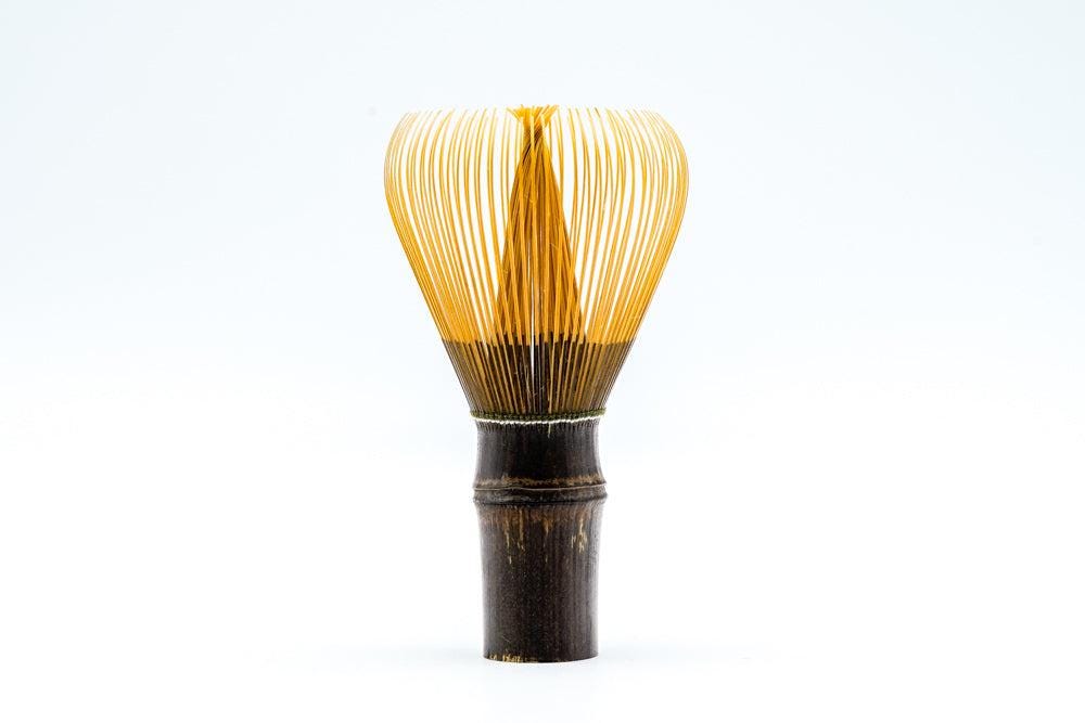 The shin (真) shape is one of the most popular due to its elegant curves, and is preferred by students of both Urasenke and Omotesenke schools of tea ceremony (though the dark bamboo is more popular with Omotesenke). Having roughly 64 tines, the shin chasen sits in between dedicated usucha chasen which have lots of thin tines, and dedicated koicha chasen, which have fewer but thicker tines. This makes shin-type chasen suitable both for whipping up a fine, foamy usucha and kneading a thick, rich koicha.