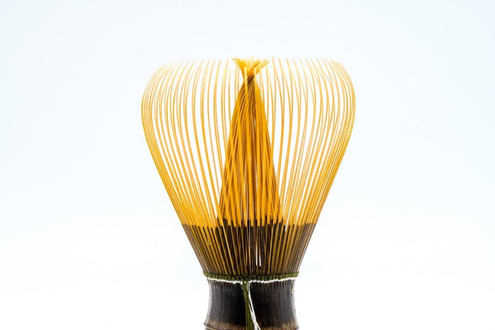 After use, be sure to clean your chasen by whisking it in a bowl of water or running it under the tap, using your fingers or a cloth to remove any matcha that has stuck to the tines. Avoid soaps as these can damage the porous bamboo. Stand the whisk up and let it air dry thoroughly. This will ensure that the tines keep their shape longer and prevents mold growth. To further reshape the tines, you can use a kusenaoshi, or matcha whisk shaper.